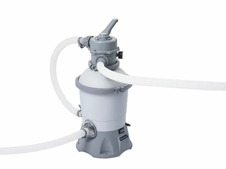 Het Power Steel zwembad wordt geleverd inclusief een zandfilterpomp (pompcapaciteit 3028 liter/uur) voor schoon en helder zwembadwater, een chloordispenser voor chloortabletten en een handige zwembadtrap.
