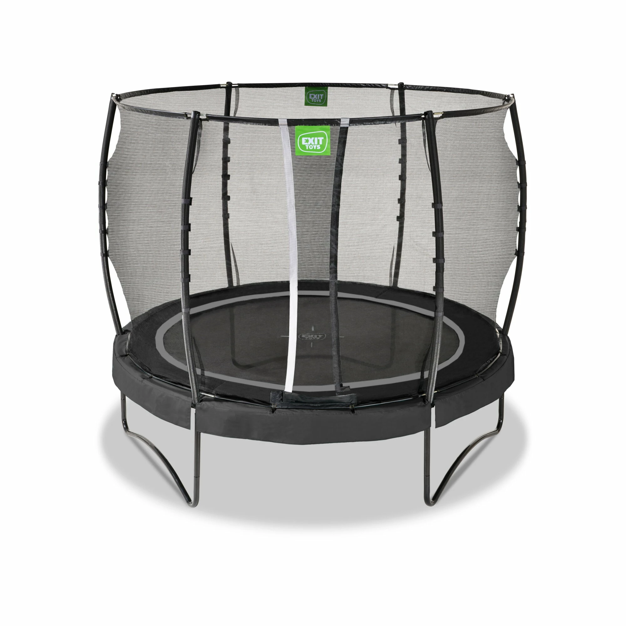 De EXIT Allure Premium trampoline ø305cm is een ronde trampoline met een zwarte beschermrand en een Premium veiligheidsnet. Met de klassieke W-vormige poten, een gegalvaniseerd en gepoedercoat frame en dubbel conische veren is deze ijzersterke trampoline er één met allure.