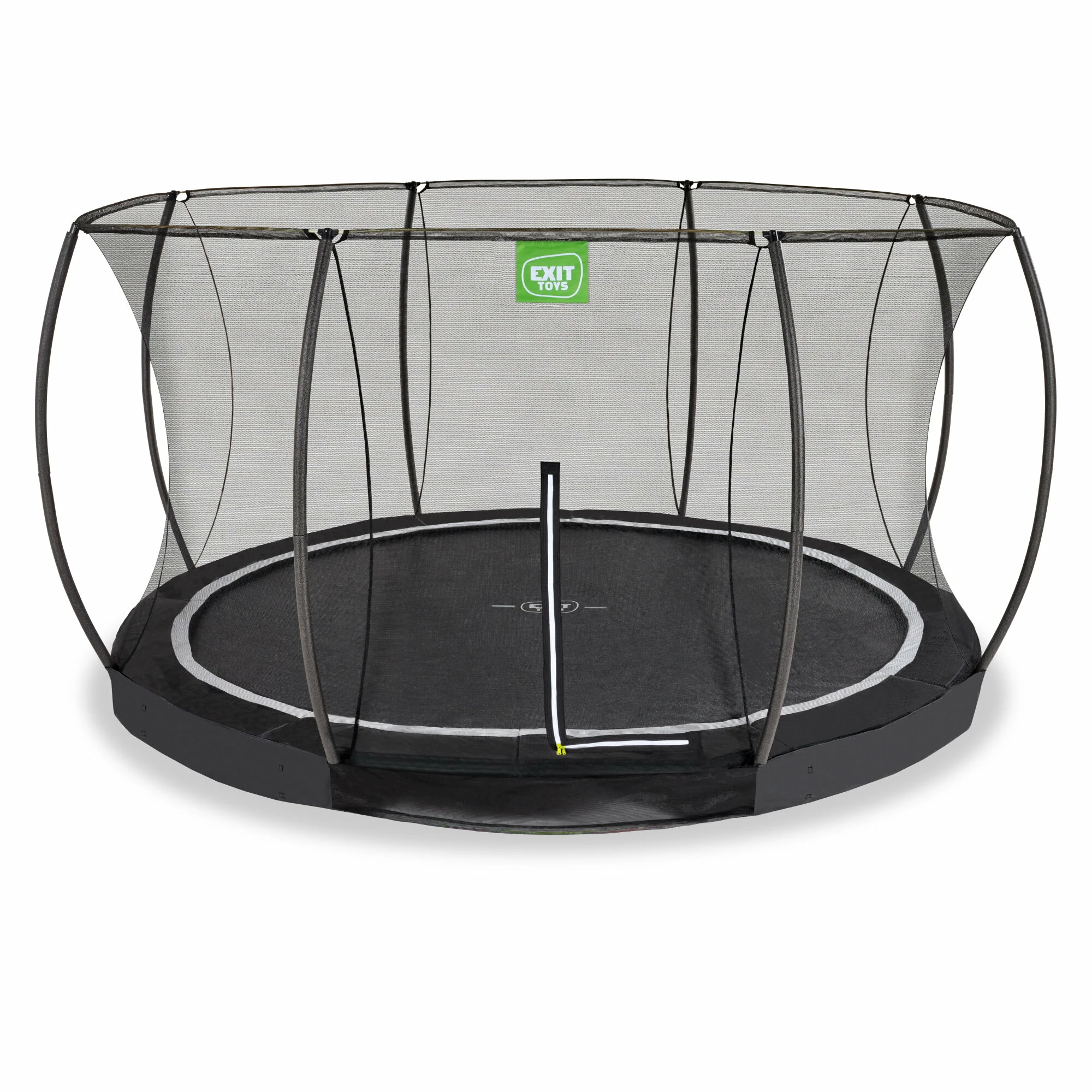 De EXIT Black Edition inground trampoline is eenvoudig te betreden en dankzij het veiligheidsnet kunnen kinderen onbezorgd springen. Het veiligheidsnet heeft gebogen staanders, zodat het net altijd strakgespannen staat en kinderen er niet in kunnen blijven hangen. Ook heeft het veiligheidsnet een opvallende ritssluiting, zodat je direct kunt zien of de rits goed is gesloten. Beleef onbezorgd springplezier met de Black Edition trampoline van EXIT Toys!