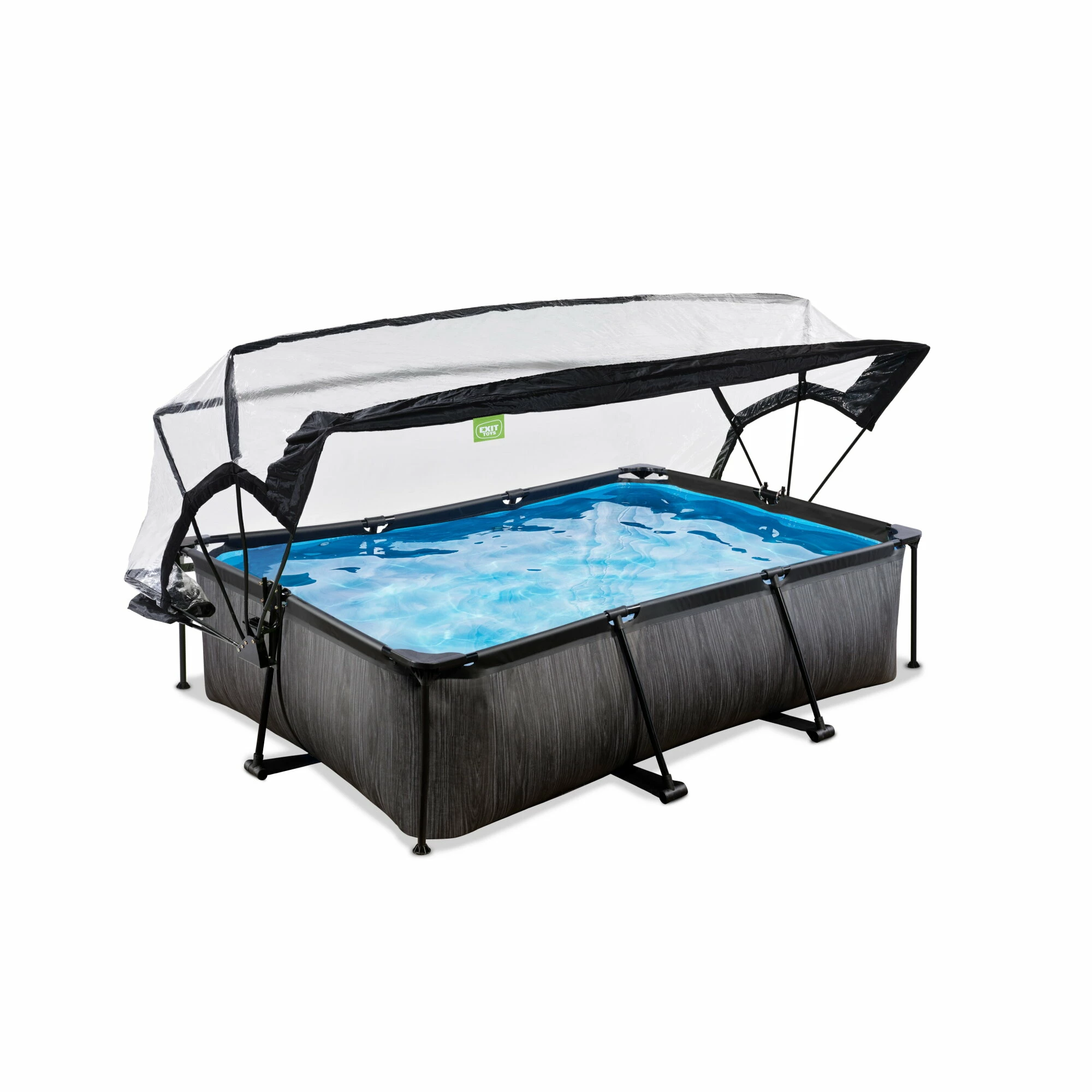 EXIT Black Wood zwembad 220x150x65cm met filterpomp en overkapping – zwart