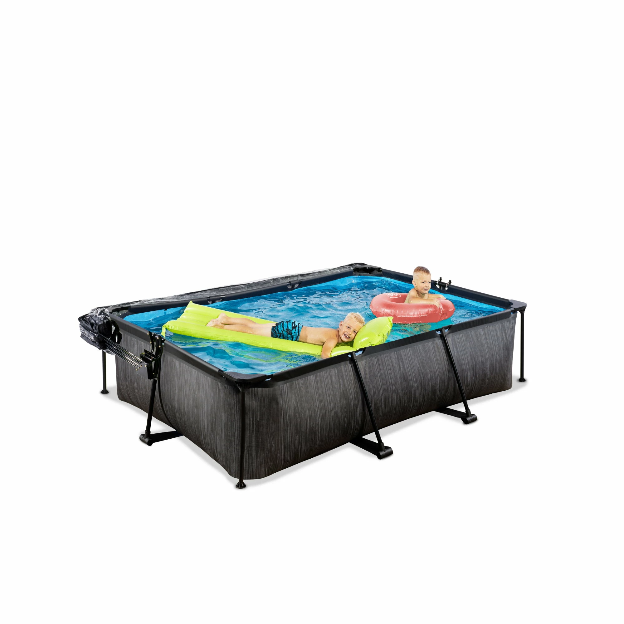 Het EXIT Black Wood zwembad 220 x 150 x 65 cm is een rechthoekig frame zwembad met overkapping. Dit compacte zwembad is standaard voorzien van een filterpomp en valt op tussen andere baden door zijn stoere donkere houtpatroon. Ben je op zoek naar een geschikt zwembad voor jonge kinderen die niet te veel ruimte in de tuin inneemt? Kies dan voor dit unieke en hoogwaardige frame zwembad van EXIT Toys!