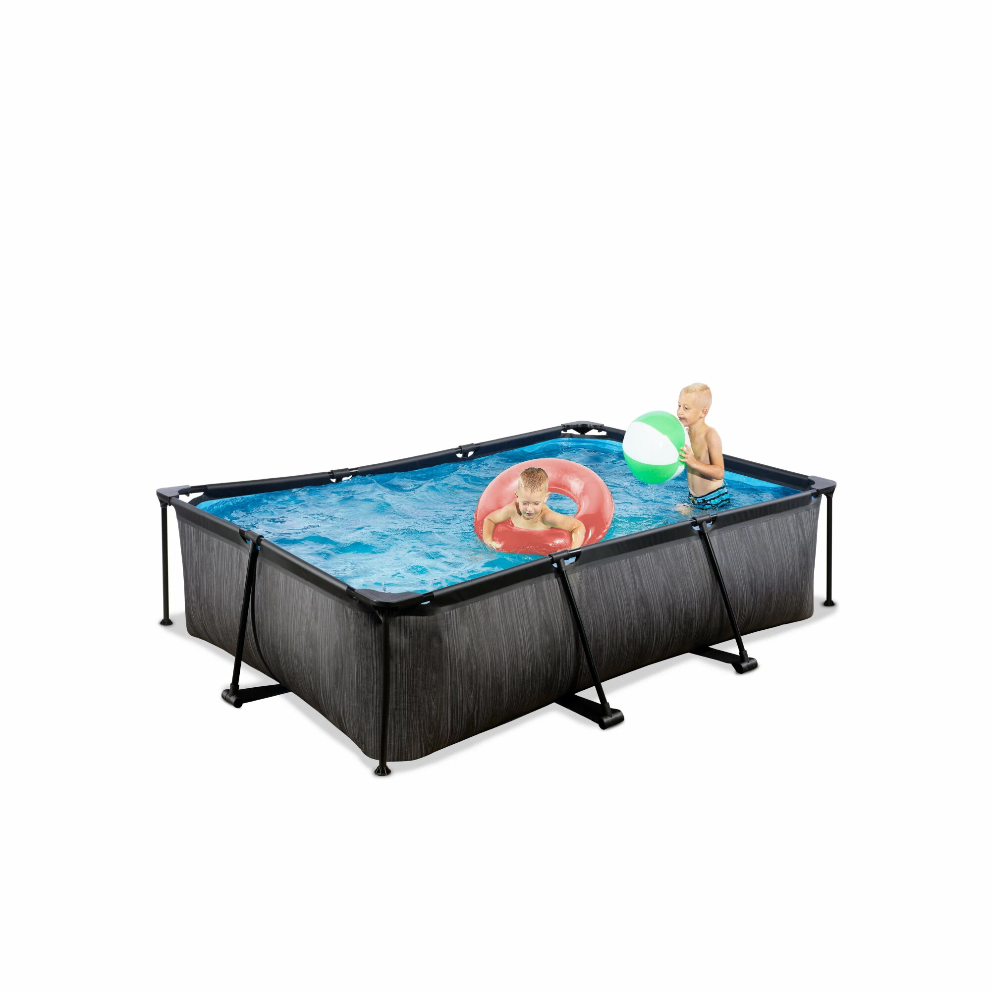 Het EXIT Black Wood zwembad 220 x 150 x 65 cm is een rechthoekig frame zwembad met zwarte houtlook. Dit compacte zwembad is standaard voorzien van een filterpomp en valt op tussen andere baden door zijn stoere donkere houtpatroon. Ben je op zoek naar een geschikt zwembad voor jonge kinderen die niet te veel ruimte in de tuin inneemt? Kies dan voor dit unieke en hoogwaardige frame zwembad van EXIT Toys!