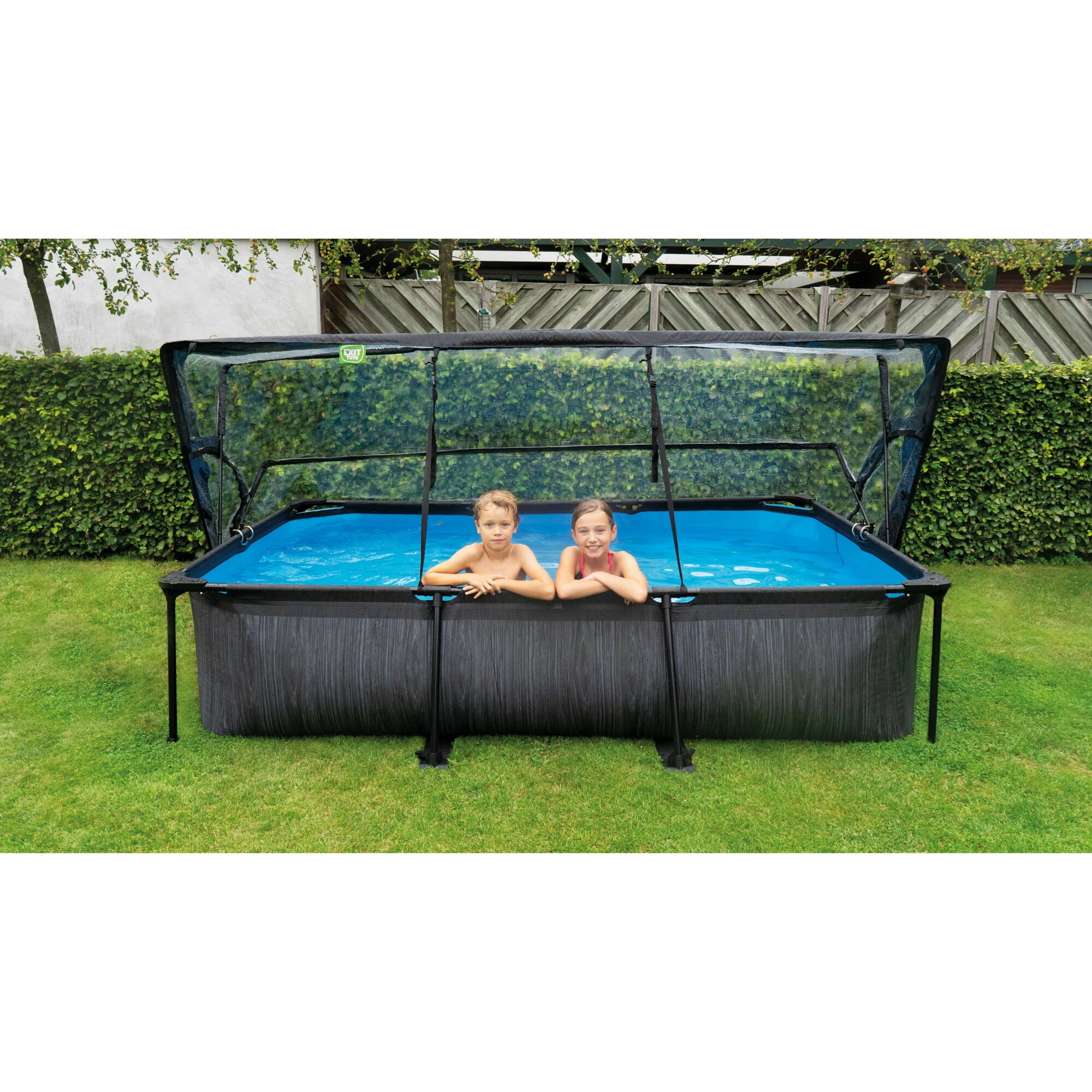 EXIT Black Wood zwembad 300x200x65cm met filterpomp en overkapping – zwart