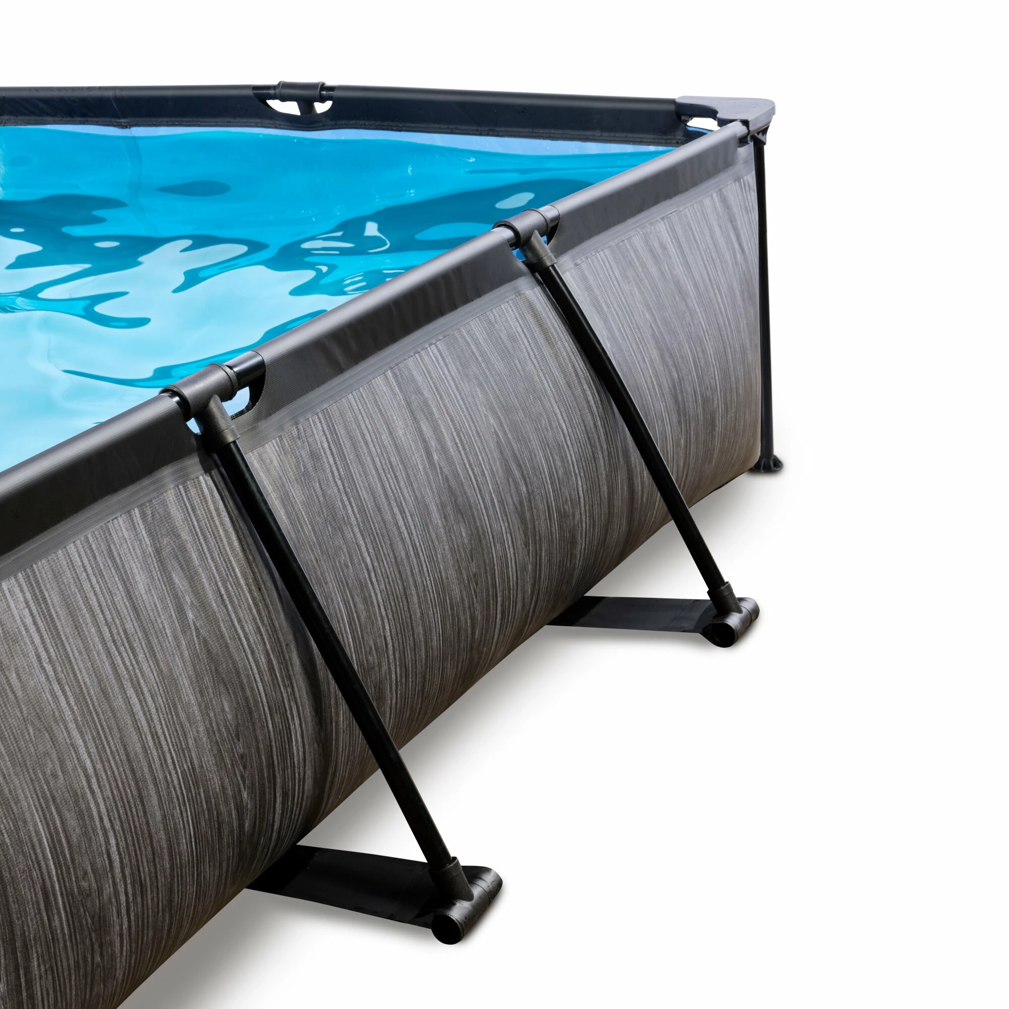 Het EXIT Black Wood zwembad 300 x 200 x 65 cm is een rechthoekig frame zwembad met overkapping. Dit compacte zwembad is standaard voorzien van een filterpomp en valt op tussen andere baden door zijn stoere donkere houtpatroon. Ben je op zoek naar een geschikt zwembad voor jonge kinderen of een ondiep bad om zelf lekker in af te koelen? Kies dan voor dit unieke en hoogwaardige frame zwembad met overkapping van EXIT Toys!