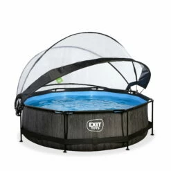 Het stoere houtpatroon en zwarte frame geven het Black Wood zwembad een unieke uitstraling en dankzij de natuurlijke look integreert het zwembad volledig in je tuin. De binnenzijde van het zwembad is blauw, zodat je het frisse zwembad gevoel houdt. Het zwembad heeft een laag frame en is daardoor eenvoudig te betreden door de allerkleinsten. Kies voor de zwembaden met overkapping van EXIT Toys, een echte musthave voor in je tuin tijdens de zomer!