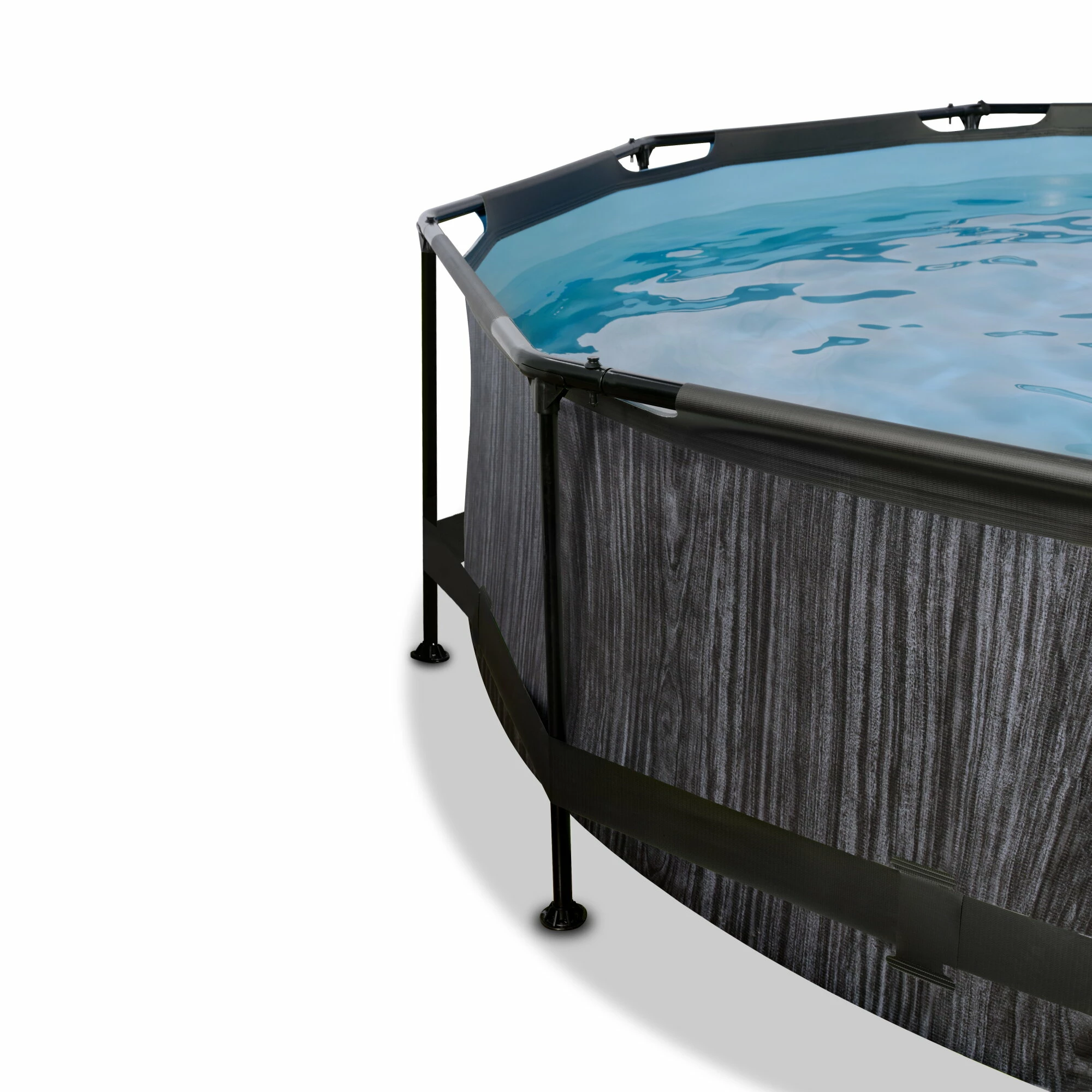 Ontdek hoe stevig een rond opzetzwembad kan zijn: het gepoedercoate stalen frame en de sterke poten van het EXIT Black Wood zwembad zorgen ervoor dat het bad altijd stabiel staat en jarenlang meegaat. De meegeleverde filterpomp houdt het water schoon en in beweging zodat vervuiling van het water wordt tegengegaan. In het EXIT Black Wood zwembad neem je altijd een frisse duik.