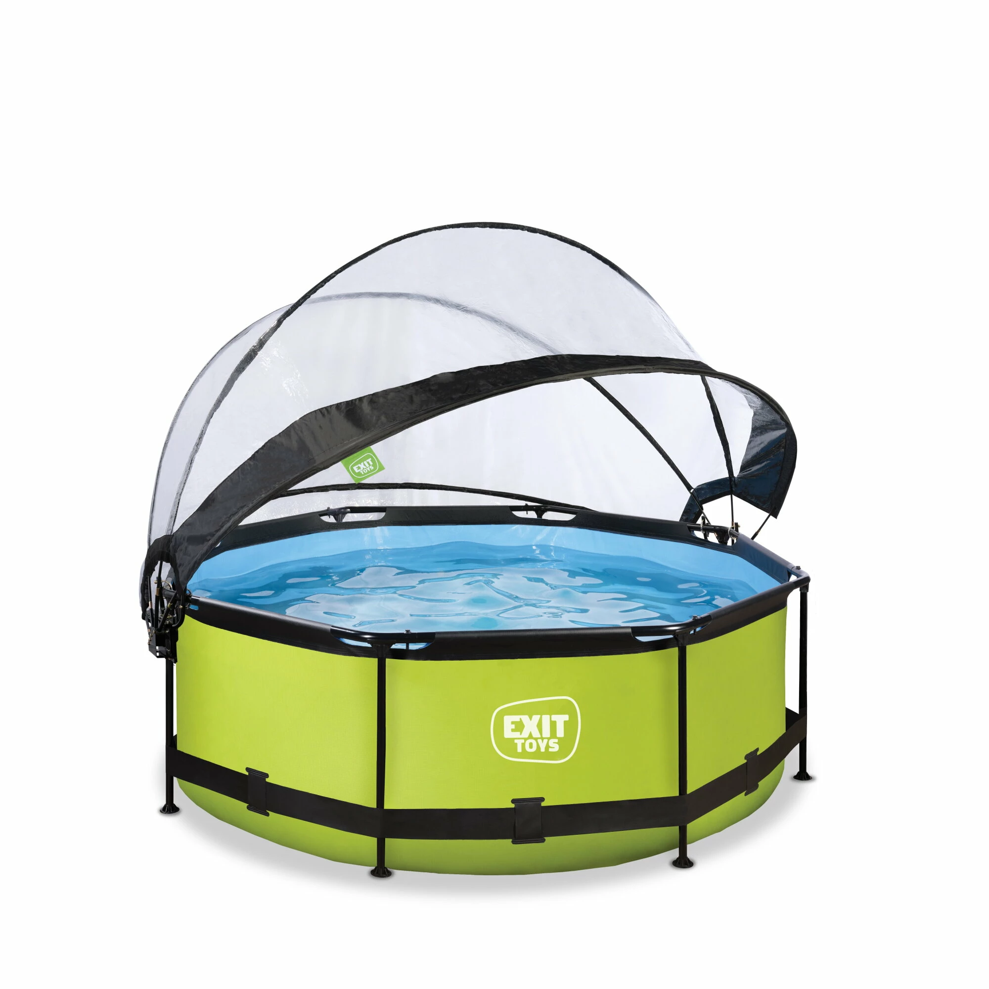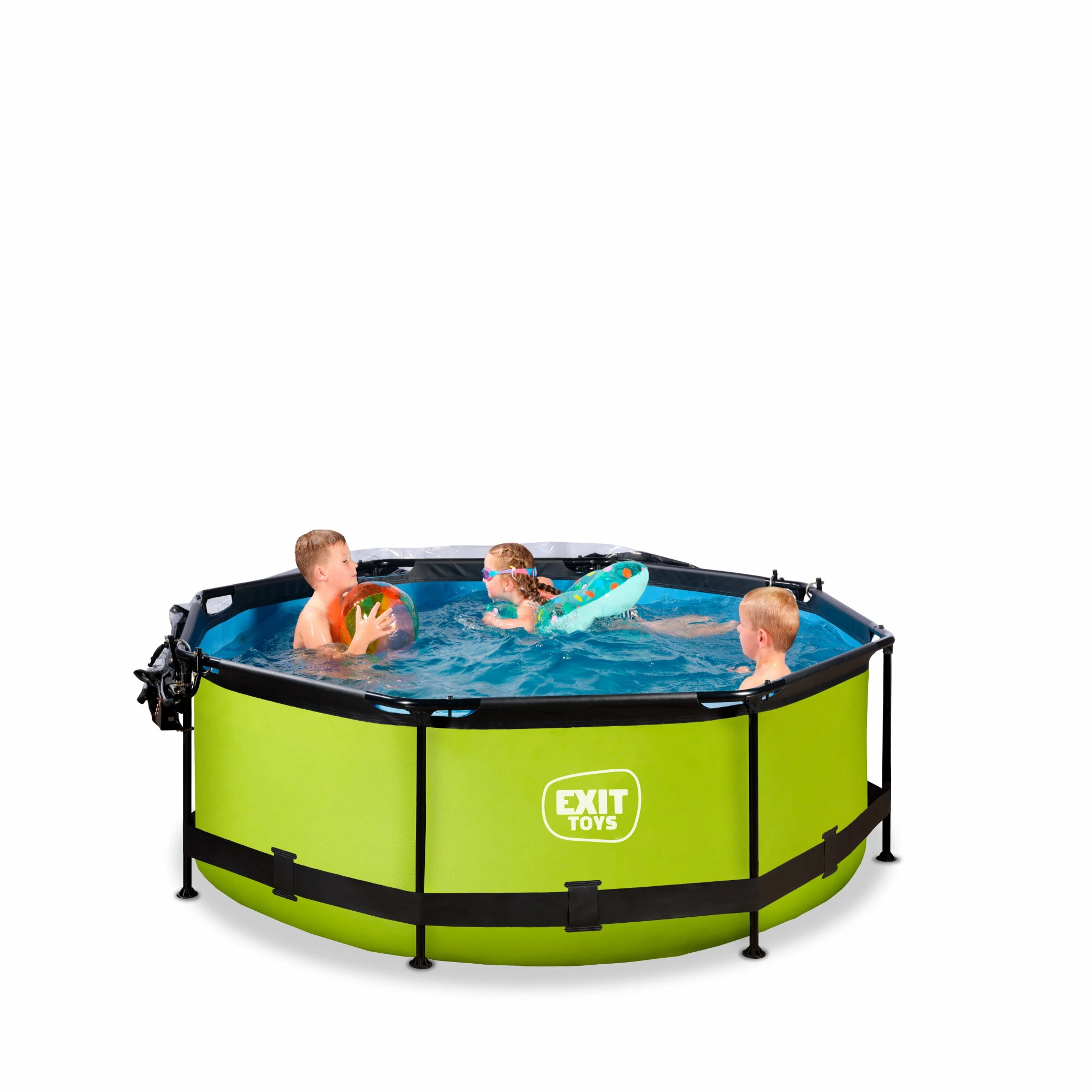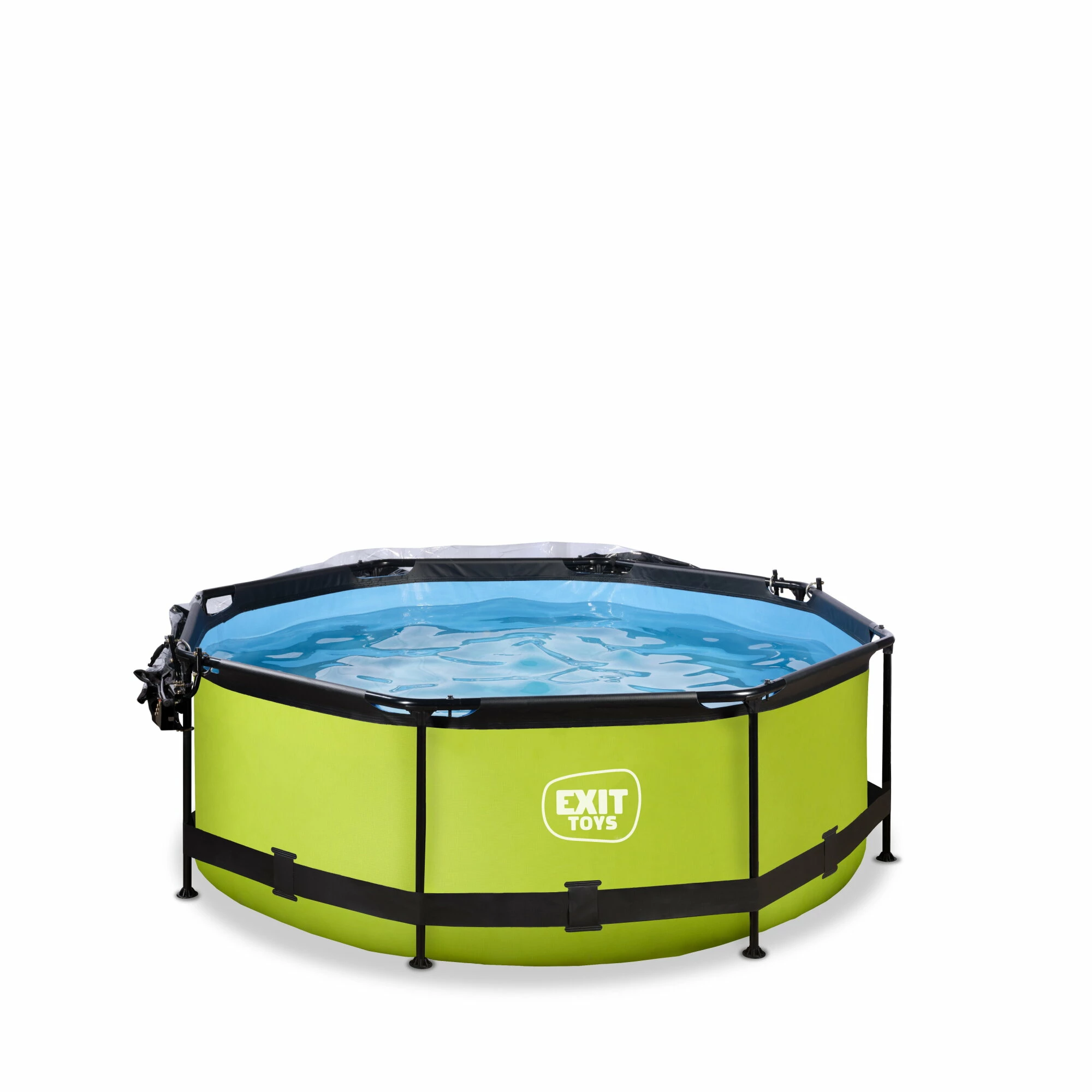 Het EXIT Lime zwembad ø244x76cm is een rond, groenkleurig frame zwembad met overkapping. Het compacte zwembad is standaard voorzien van een filterpomp en valt op tussen andere zwembaden door zijn frisse limoengroene kleur. Ben je op zoek naar een leuk en tegelijkertijd uniek en hoogwaardig frame zwembad in je tuin? Steel de show met de ronde zwembaden van EXIT Toys.