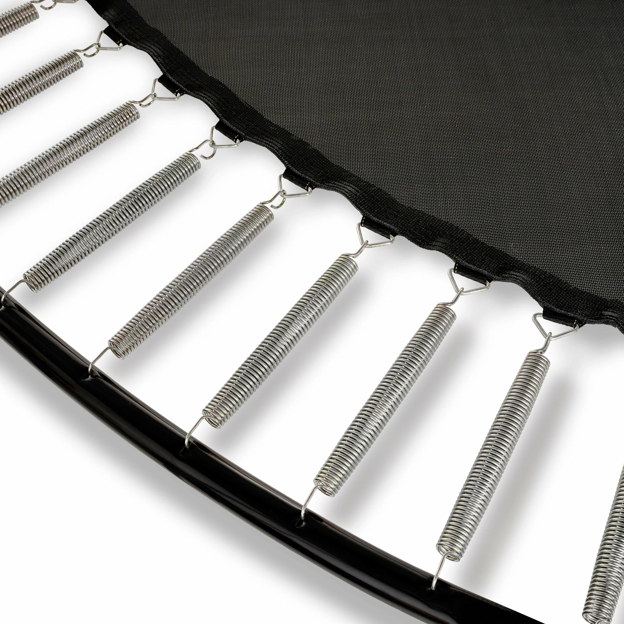 De goede kwaliteit van de EXIT PeakPro trampoline is onder andere terug te vinden in het frame. Het trampolineframe is gegalvaniseerd en gepoedercoat waardoor roest geen kans maakt. Daarnaast zijn de poten en toprail heel stevig, waardoor de trampoline bij de wildste sprongen goed op zijn plek blijft staan. So, let’s jump!