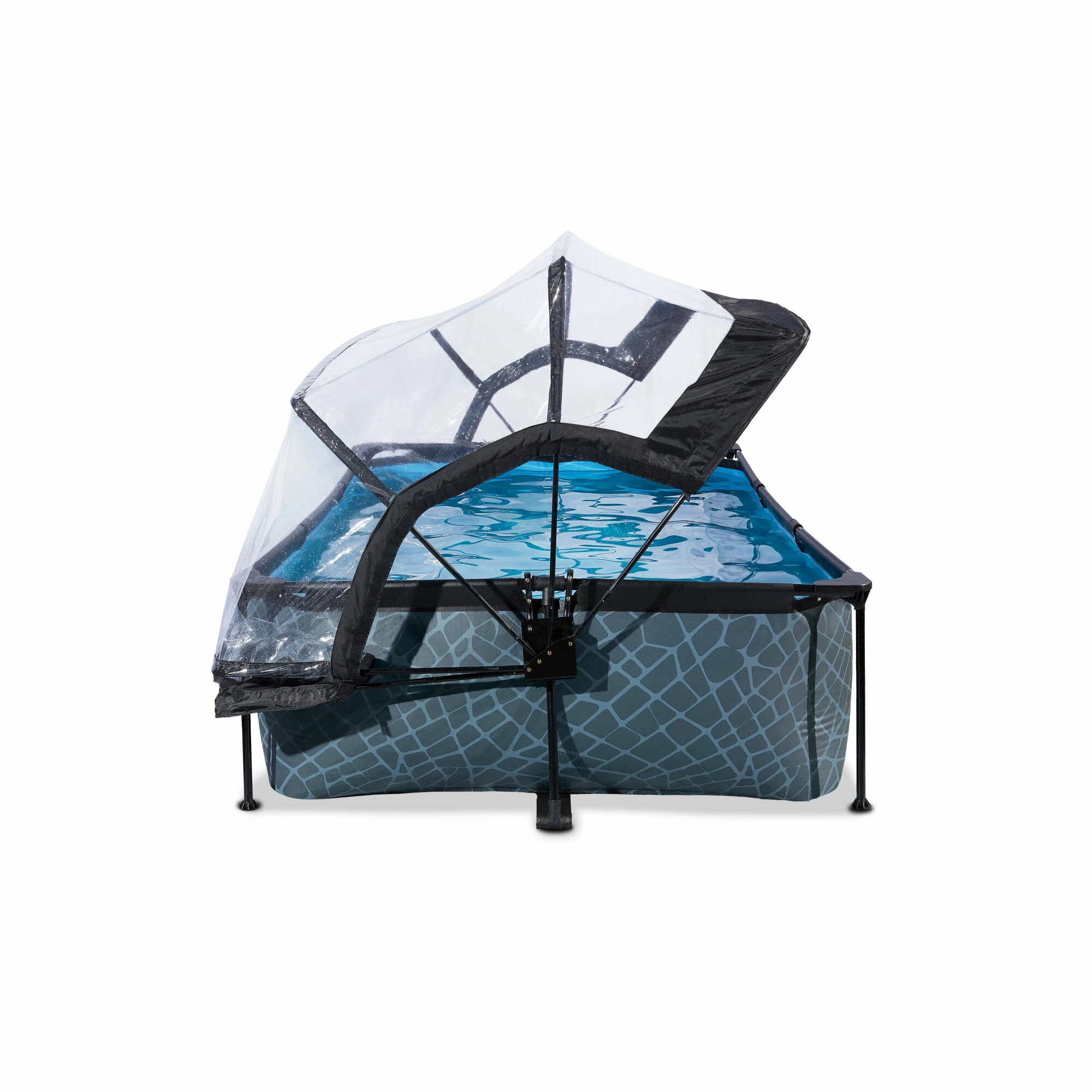 EXIT Stone zwembad 220x150x65cm met filterpomp en overkapping – grijs