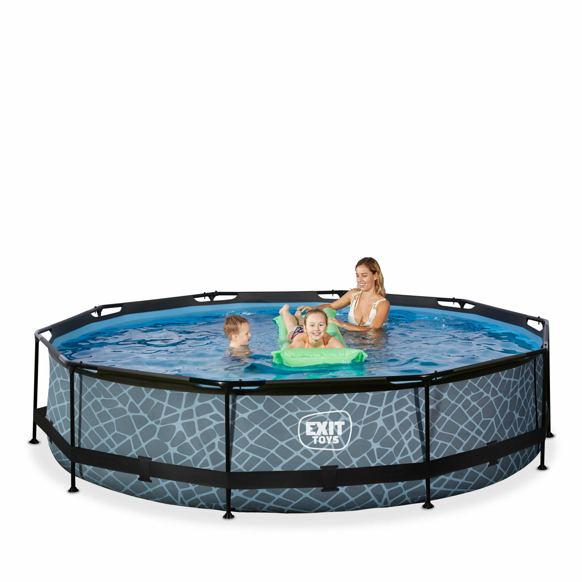 Het EXIT Stone zwembad ø360x76cm is een groot rond grijskleurig frame zwembad. Het zwembad is standaard voorzien van een filterpomp en valt op tussen andere zwembaden door zijn stoere steenpatroon. Ben je op zoek naar een leuk en tegelijkertijd uniek en hoogwaardig frame zwembad in je tuin? Steel de show met de ronde zwembaden van EXIT Toys!