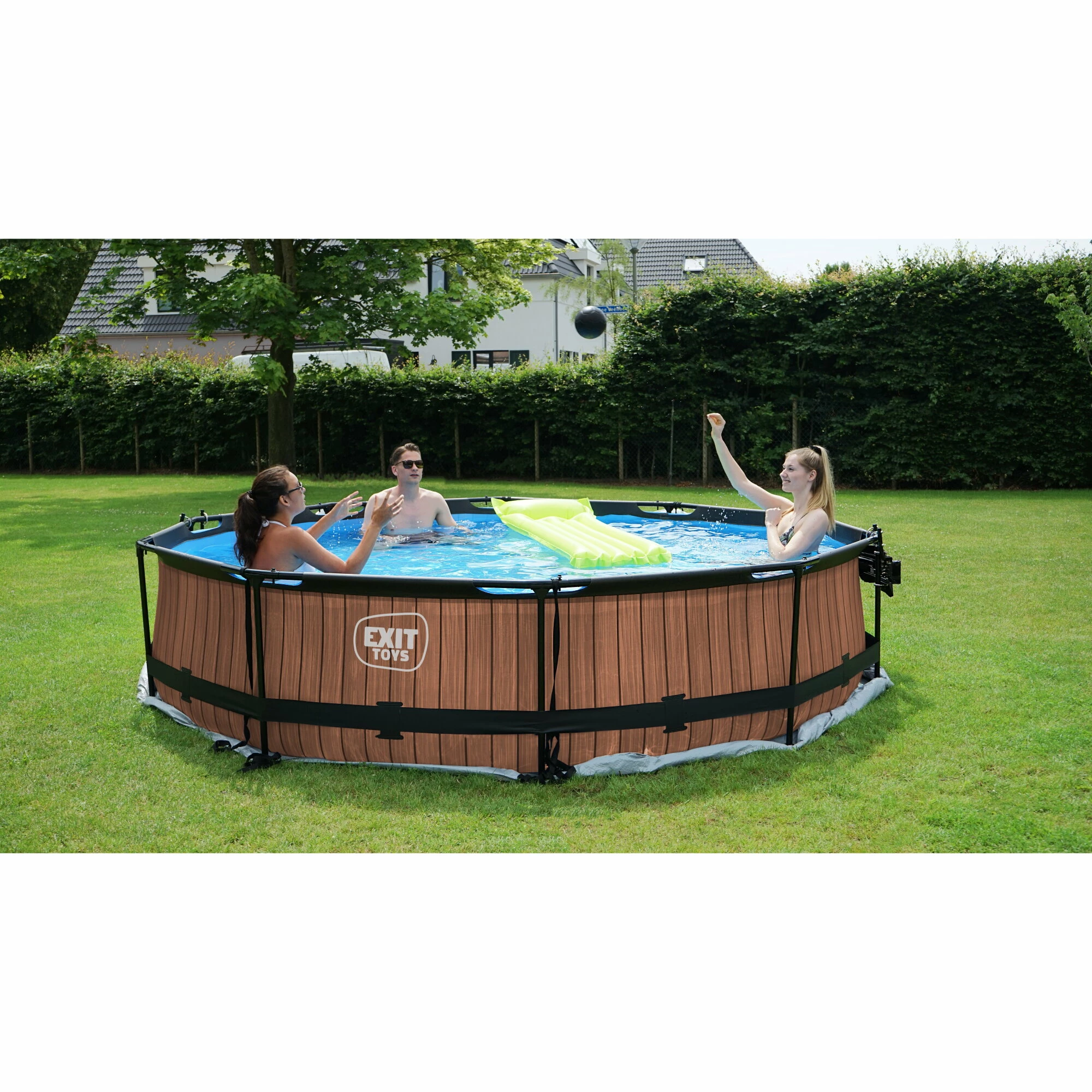 Ontdek hoe stevig een rond opzetzwembad kan zijn: het gepoedercoate stalen frame en de sterke poten van het EXIT Stone zwembad zorgen ervoor dat het bad altijd stabiel staat en jarenlang meegaat. De meegeleverde filterpomp houdt het water schoon en in beweging zodat vervuiling van het water wordt tegengegaan. In het EXIT Stone zwembad neem je altijd een frisse duik!