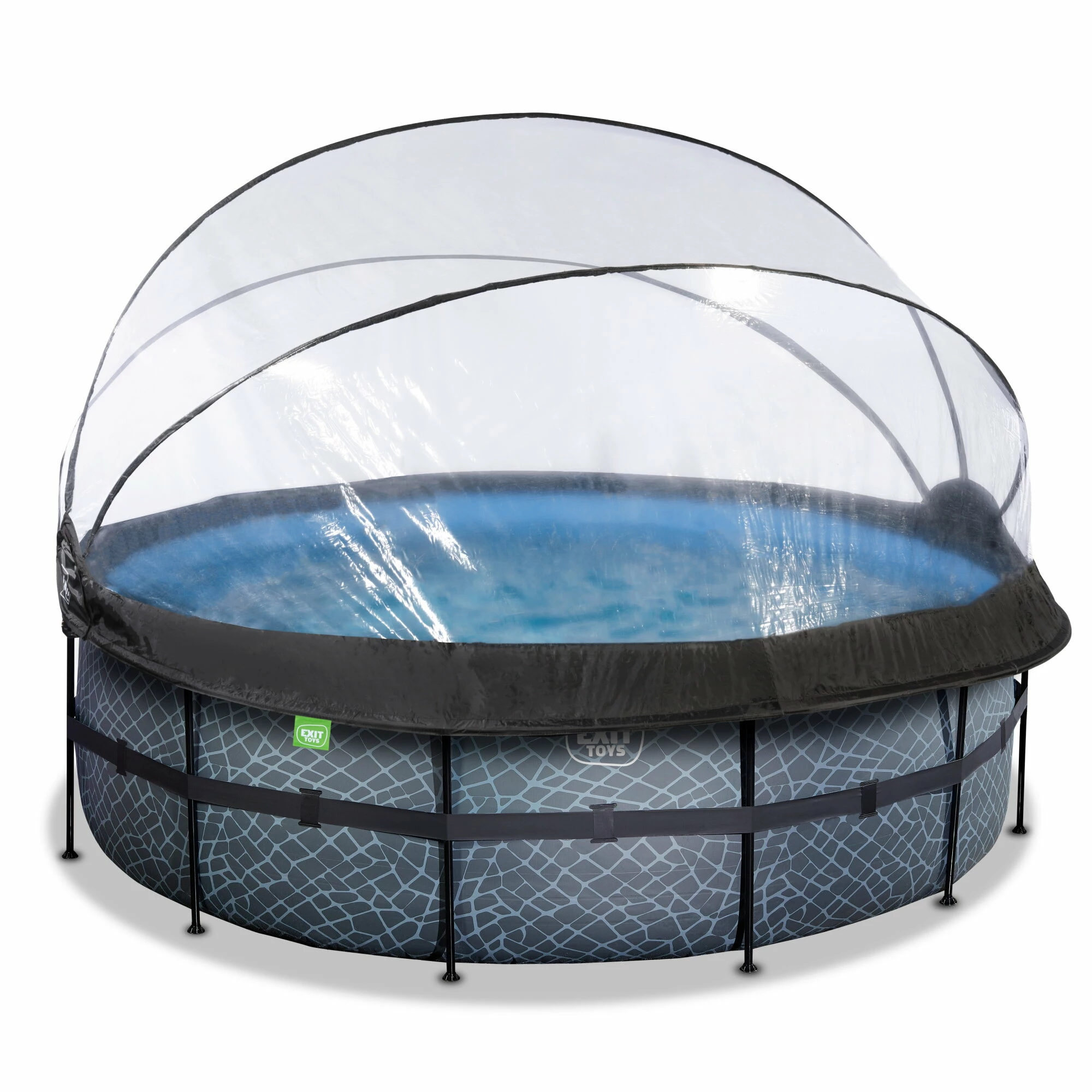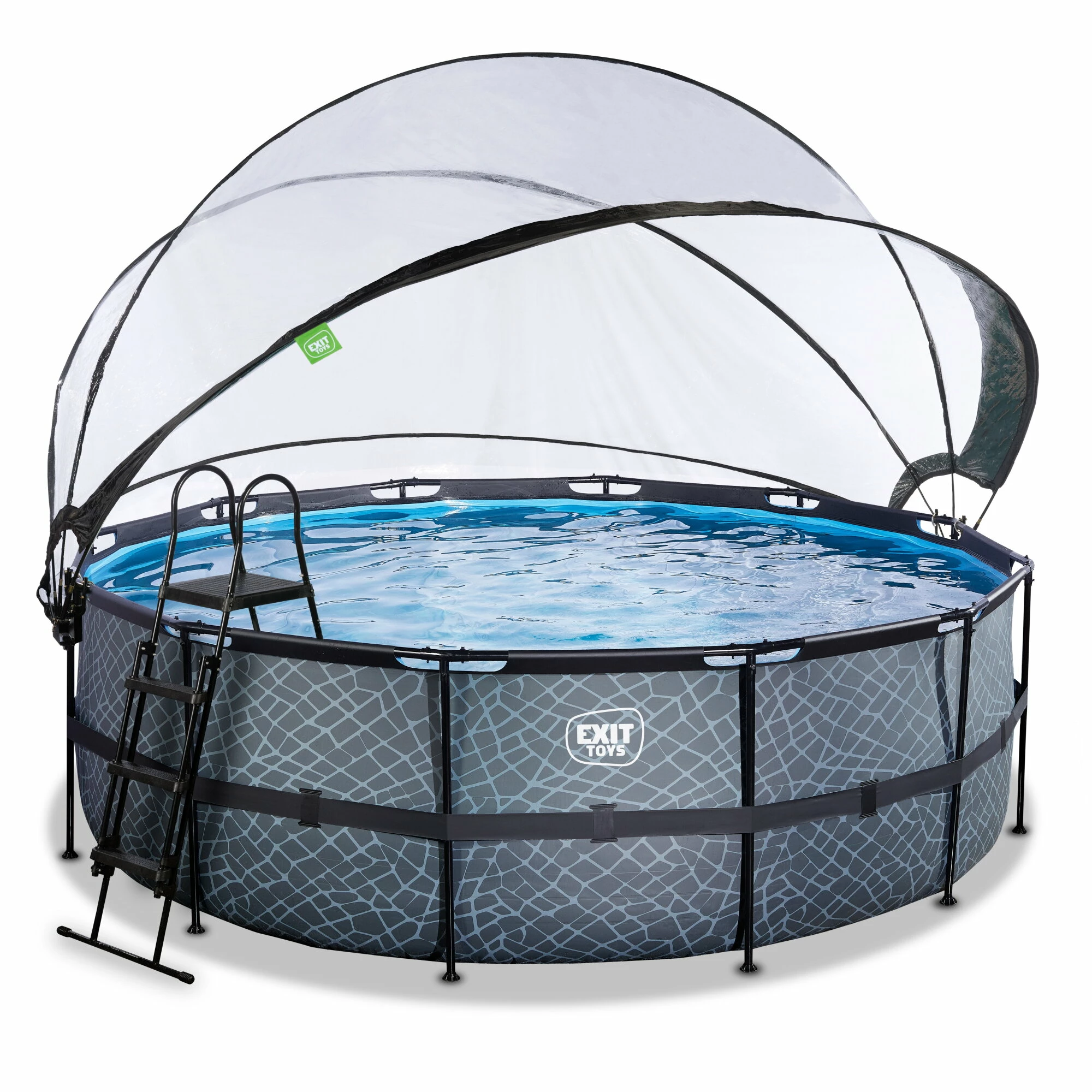 EXIT Stone zwembad ø427x122cm met zandfilterpomp en overkapping – grijs