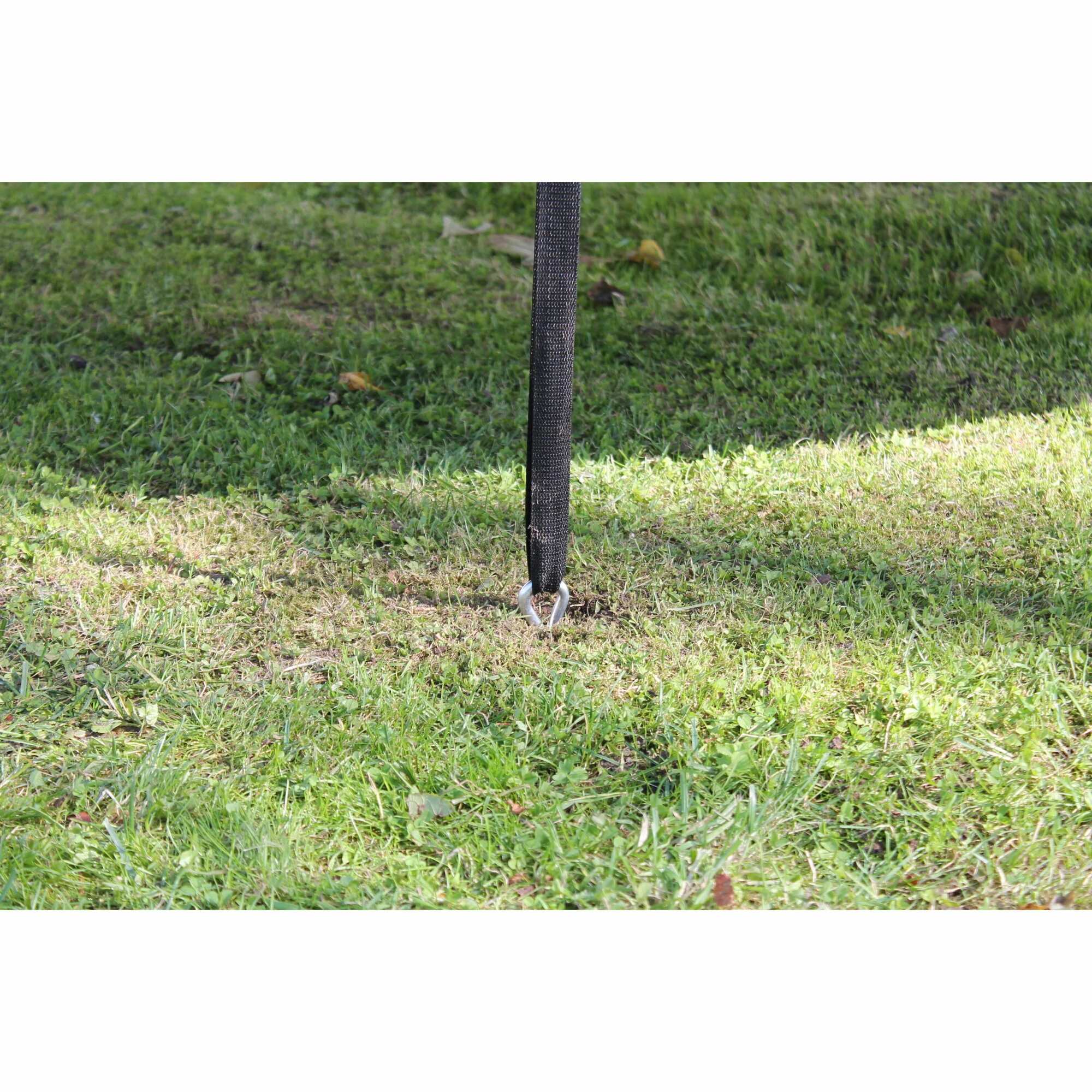 De EXIT trampoline ankerset bestaat uit vier ankers en vier banden voor het verankeren van de trampoline aan de grond. Hierdoor staat het frame van de trampolines op poten van EXIT Toys stevig en kan het zelfs met de wildste sprongen niet verschuiven.