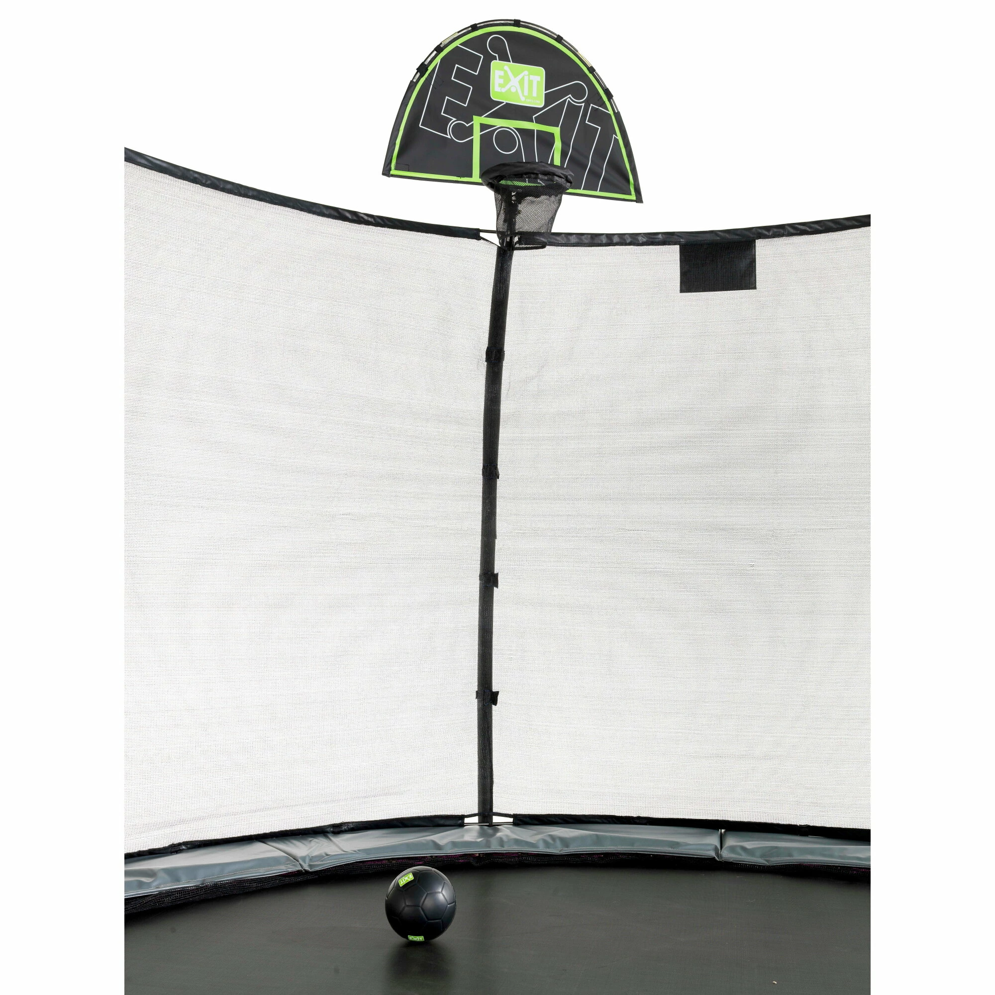 Met de EXIT trampoline basket in de kleuren groen en zwart beleef je nóg meer plezier tijdens het trampolinespringen. De trampoline basket kan eenvoudig op de paal van de veiligheidsnetten met een diameter tussen 25 en 38 millimeter worden gemonteerd. De trampoline basket van EXIT Toys wordt geleverd met een bijpassende zachte foambal. Oefen de coolste moves en een échte slamdunk met de EXIT trampoline basket!