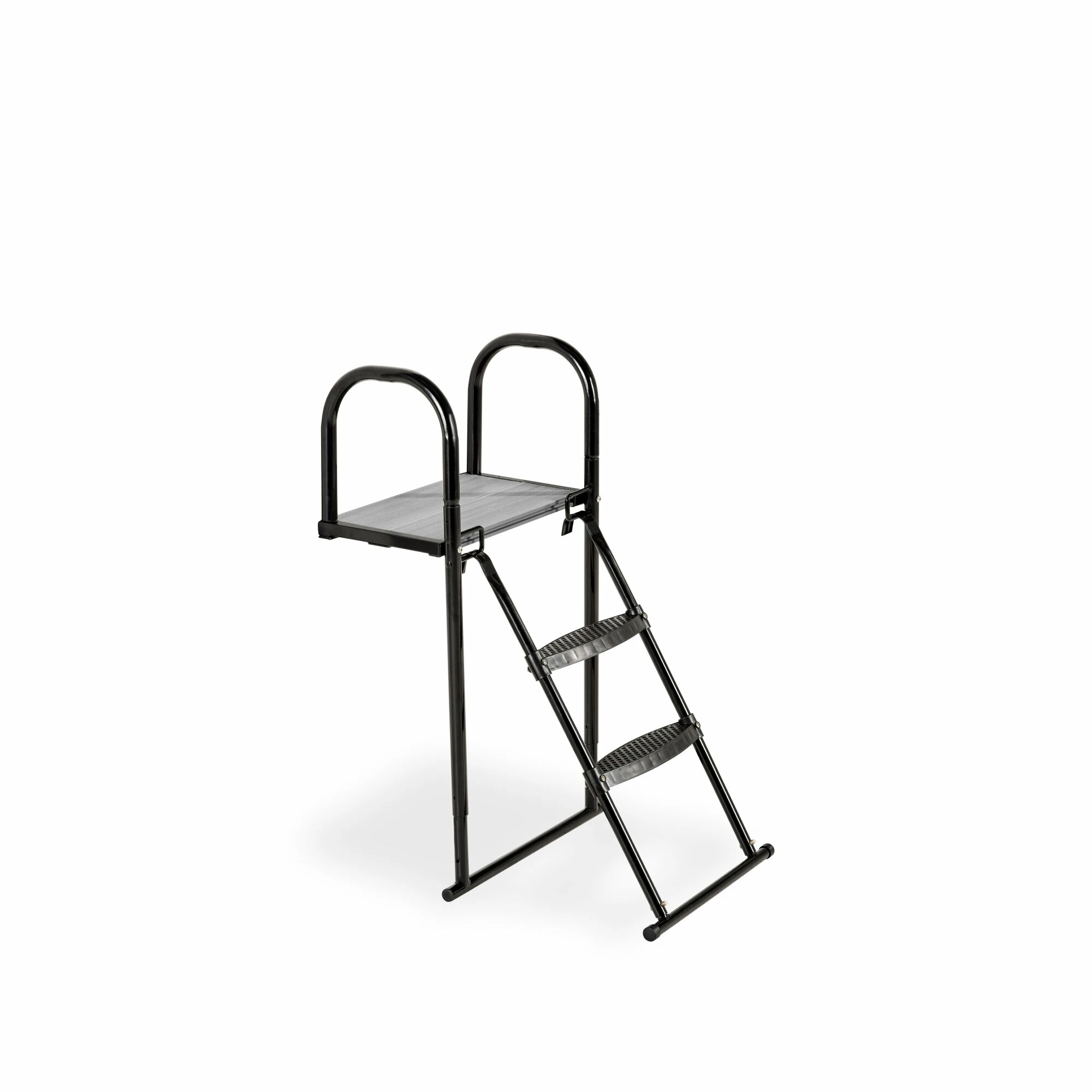 Het EXIT trampoline platform met een trampoline ladder voor framehoogtes tussen de 65 en 80 centimeter is een uitstekend hulpmiddel om op veilige wijze op een trampoline op poten te klimmen. Het platform wordt aan de trampoline bevestigd en de ladder hang je aan het platform, waardoor een prettige opstap naar de trampoline ontstaat.