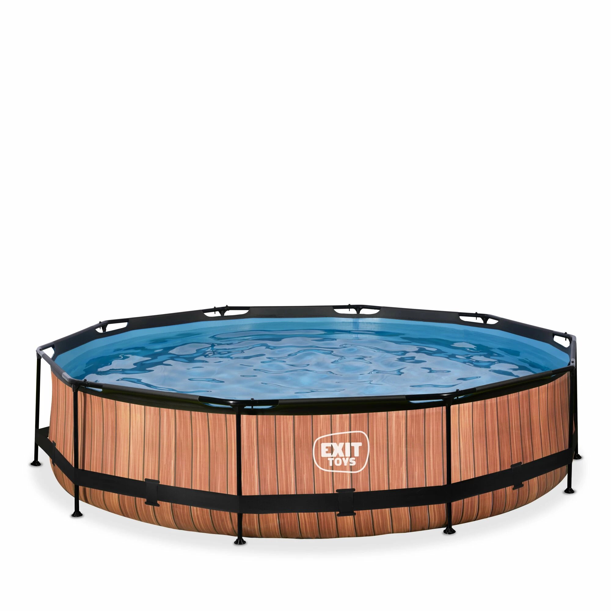 Het EXIT Wood zwembad ø360x76cm is een groot rond frame zwembad met houtlook. Het zwembad is standaard voorzien van een filterpomp en valt op tussen andere zwembaden door zijn stoere houtpatroon. Ben je op zoek naar een leuk en tegelijkertijd uniek en hoogwaardig frame zwembad in je tuin? Steel de show met de ronde zwembaden van EXIT Toys!