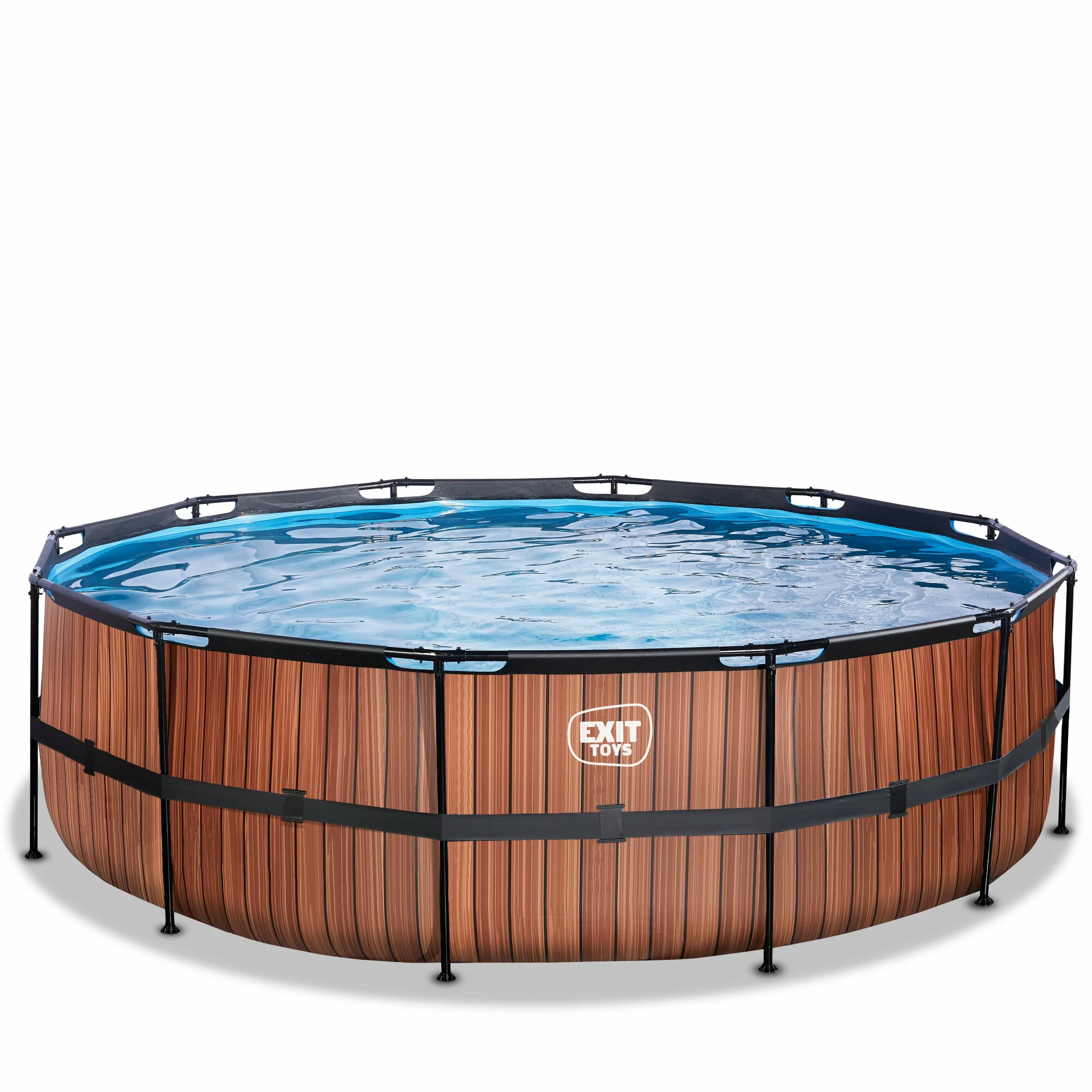 EXIT Wood zwembad ø488x122cm met zandfilterpomp – bruin