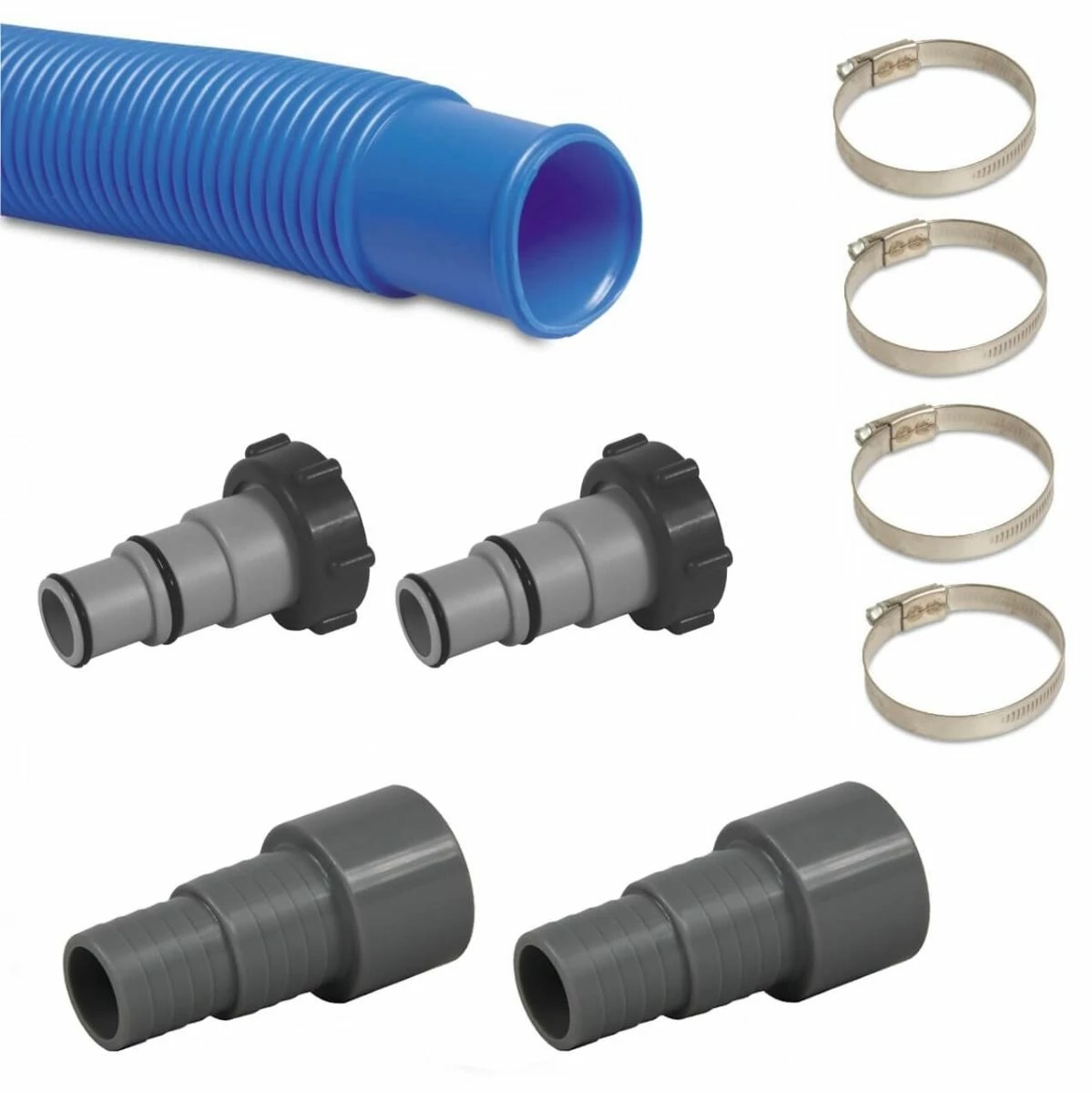 Wanneer je een Intex zwembad met Ø 38 mm aansluitingen hebt en hierop de Comfortpool Inverter Pro warmtepomp wilt aansluiten, dan dien je deze aansluitset aan te schaffen. Deze onderdelen zijn nodig om de aansluitingen van de warmtepomp passend te maken voor jouw Intex zwembad en filterpomp.