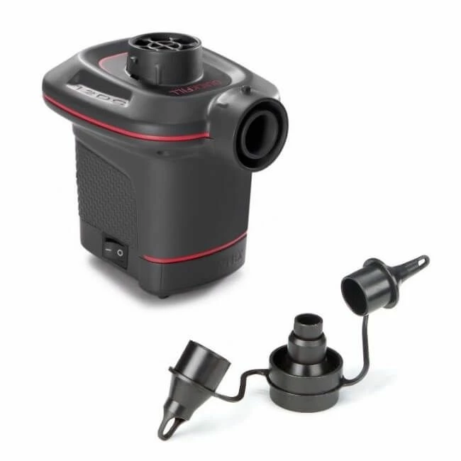 De Intex QuickFill® elektrische motorpomp heeft een opblaas- én leegzuigfunctie. Hiermee is jouw opblaasproduct niet alleen snel opgepompt, maar na gebruik ook weer zo leeg en klaar om opgeborgen te worden. Erg handig!