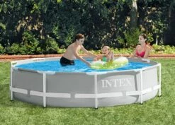 Dit zwembad is een onderdeel van de Intex Premium Pool Line serie. De Intex Prism Frame zwembaden hebben een sterk gepoedercoat frame, en een stijlvolle look door de frisse grijze kleur. Dit rechthoekige Prism Frame zwembad is lekker ruim, en groot genoeg om met het hele gezin in rond te spetteren. Waterpret verzekerd!