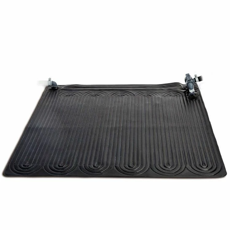 De Intex Solarmat installeer je tussen de filterpomp en de retourleiding naar het zwembad. De filterpomp pompt het water door de solar mat terwijl de zon op de zwarte mat schijnt. Het water in de solar mat warmt op en stroomt vervolgens verwarmd terug naar het zwembad. Wanneer de Intex solar mat de hele dag in de zon ligt warmt het zwembad zo (afhankelijk van de weersomstandigheden) circa 5 °C op.