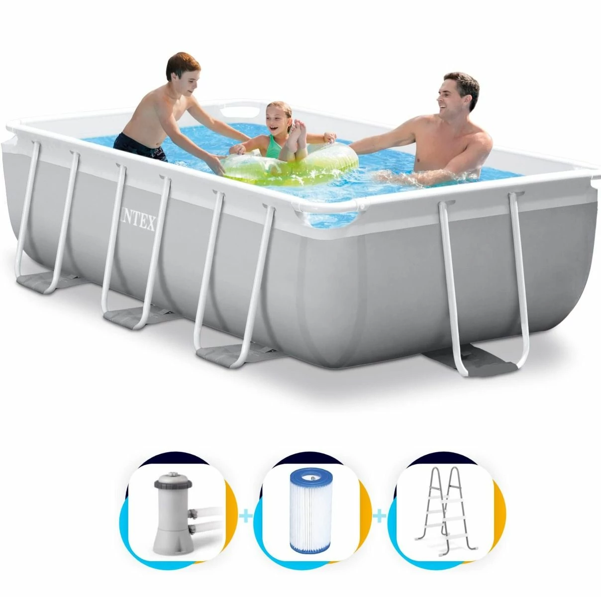 Dit zwembad is een onderdeel van de Intex Premium Pool Line serie. De Intex Prism Frame zwembaden hebben een sterk gepoedercoat frame, en een stijlvolle look door de frisse grijze kleur. Dit rechthoekige Prism Frame zwembad is lekker ruim, en groot genoeg om met het hele gezin in rond te spetteren. Waterpret verzekerd!