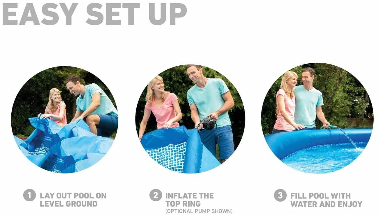 De Intex Easy Set Pool is hรฉt zwembad waardoor al duizenden gezinnen heerlijke warme zomerdagen hebben beleefd in hun achtertuin! Waarom nog de auto pakken voor het zwembad of het strand, als je dezelfde verkoeling en kwaliteit bij je thuis kunt krijgen? Het zwembad is eenvoudig te onderhouden, makkelijk te monteren en leuk om te bezitten. Het zwembad is zo groot dat het hele gezin er gebruik van kan maken. Je kunt heerlijk relaxen op jouw luchtbed, en de kinderen hebben meer dan genoeg ruimte om er in te spelen. Het grote voordeel van dit zwembad is dat het zeer eenvoudig op te zetten is. Binnen maximaal 15 minuten is het gebruiksklaar!
